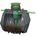 • Iebūvēts bioloģiskais filtrs ar virsmas laukumu 141 m²/m³ – veidojas mikroorganismu bioplēve, kas uzlabo attīrīšanu jau tvertnē.